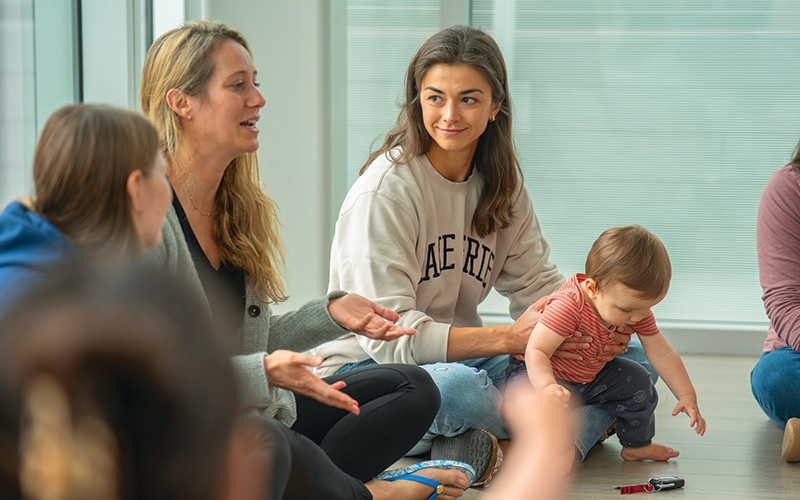 The soundtrack of babies – cooing, squawking, laughing, crying – weaves through the quiet but intense conversation of their mothers.