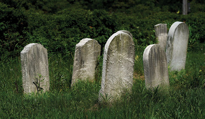 Conde, who has 26 years’ experience working in some of New England’s oldest cemeteries, sees the history of Shaker Heights in the stones themselves. As she walks through the graveyard, she points out some of the original hand-carved sandstone and limestone markers that came from local quarries. Later gravestones, made from more durable marble and granite, arrived by boat or rail from as far away as Georgia, she says.