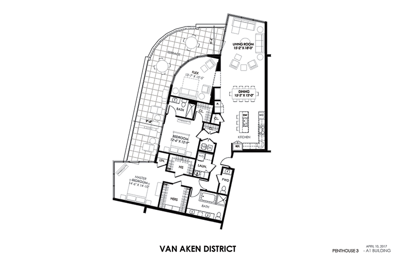 Apartment living doesn’t mean giving up summer evenings outside. Penthouses include their own private terraces and, in addition, all residents have access to a shared rooftop terrace, which will be equipped with grills and furniture for lounging and dining. A 750-square-foot indoor amenity room on the rooftop level can be reserved by residents for private use, too. Residents also will have use of a fitness facility, accessible through a private entrance. The facility will be adjacent to GrooveRyde, a District tenant that will offer residents complimentary group exercise courses.