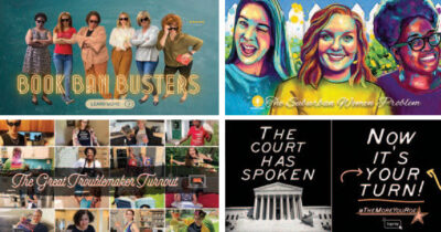 Many people vote for the high-profile positions on the ballot, such as governor or senator, but don’t vote “down ballot” for offices such as state supreme court judge or state school superintendent because they feel they don’t know enough about the candidates or the stakes of who fills those positions. This is a way, says Paris, that Troublemakers can be really helpful to people in their networks – by sharing information about those down-ballot elections. Elections matter right down to the local level, and it can often be easier and feel less partisan to discuss those races with family, friends, and acquaintances, she says.