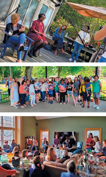 From top: The BBC filming a piece on the power of Suburban Women 2020; Red Wine & Blue PAC hosts an Ice Cream Social for Nan Whaley for Governor; Red Wine & Blue members at a Vino the Vote party, RW&B’s version of an organizing house party.