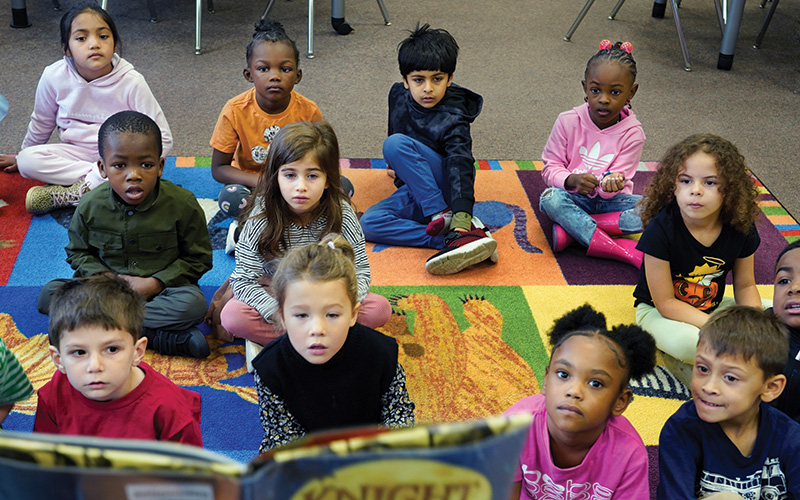 Damore, one of the Shaker Heights City School District’s five English-language instructors, sits at a table with a Taiwanese second-grader. He has chosen “Animalia,” a popular picture book by author Graeme Base, for today’s session. Damore reads softly to the little boy. “Lions lounging in the local library,” she says. “Juggling jugs of jelly. See how that sounds? That’s called alliteration.”